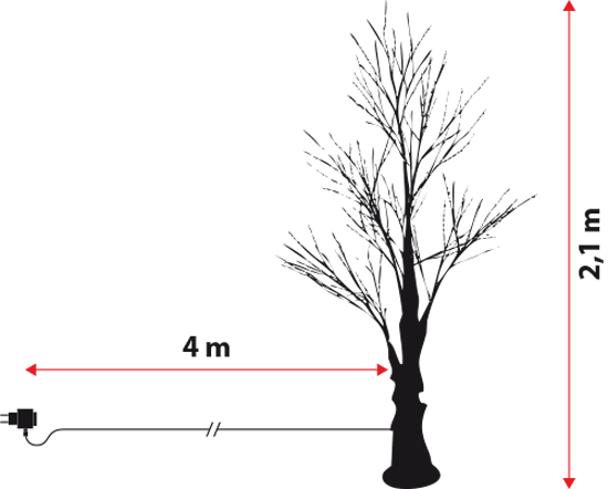 Der Baum ist 210 cm hoch und mit 900 warmweißen LEDs auf Kupferdraht bestückt.