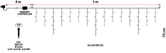 5 / 5 - Stalattite 3 x h 0,7 m, 60 led bianchi