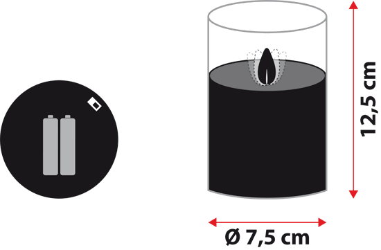 - Ø 7,5 cm, h. 12,5 cm