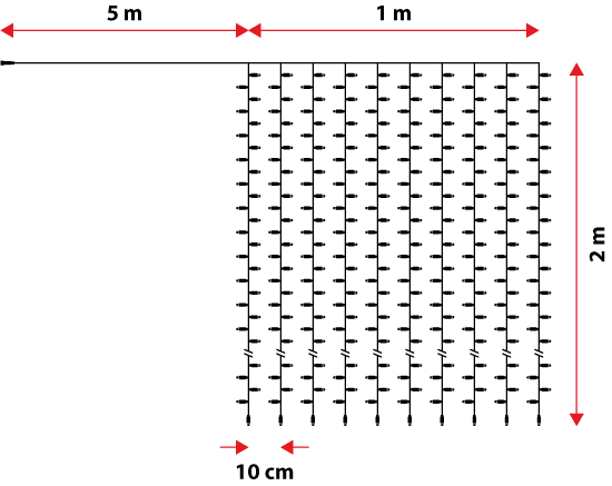 Der Lichtervorhang hat ein 5 m langes Netzkabel, das Bewegungs- und Anwendungsfreiheit garantiert.