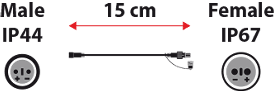 - Sie möchten eine bereits an das Stromnetz angeschlossene PML IP44-Dekoration mit einer neuen PML IP67-Dekoration verbinden (siehe Foto).