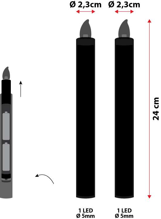 - 2 x AAA Batterien je Kerze (nicht enthalten)