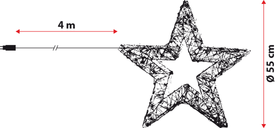 3D roter Stern Ø 55 cm, MicroLEDs extra warmweiß