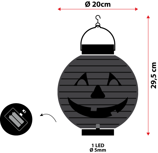 5 / 5 - Farolillo Led calabaza de Halloween Ø 20 cm