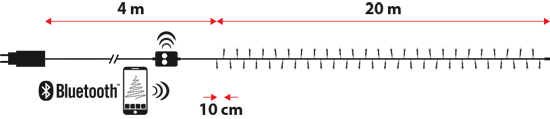 20-Meter-Kette mit 200 ultrahellen RGB-LEDs, verwaltet über die Smartphone-App (kostenlos erhältlich für iOS und Android).