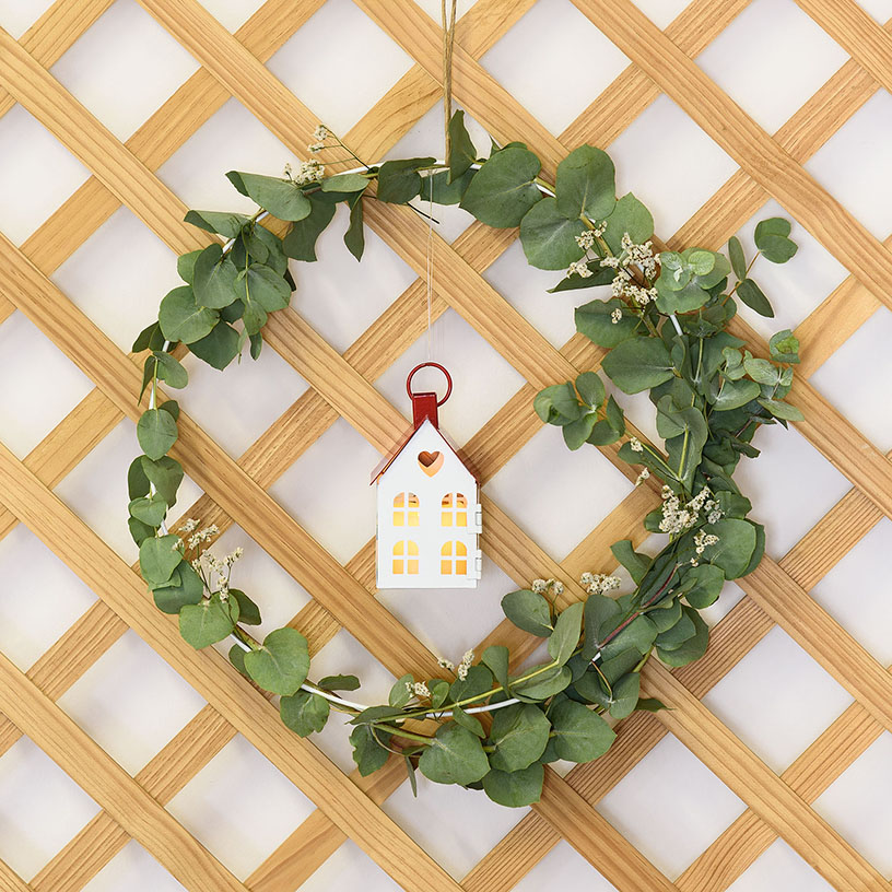 Wir haben uns von Kindermärchen inspirieren lassen, um eine Weihnachtsgirlande mit Eukalyptuszweigen und Schleierkraut zu gestalten. Und ein Märchen wäre ohne unser Kerzenhaus mit dem roten Dach nicht möglich.