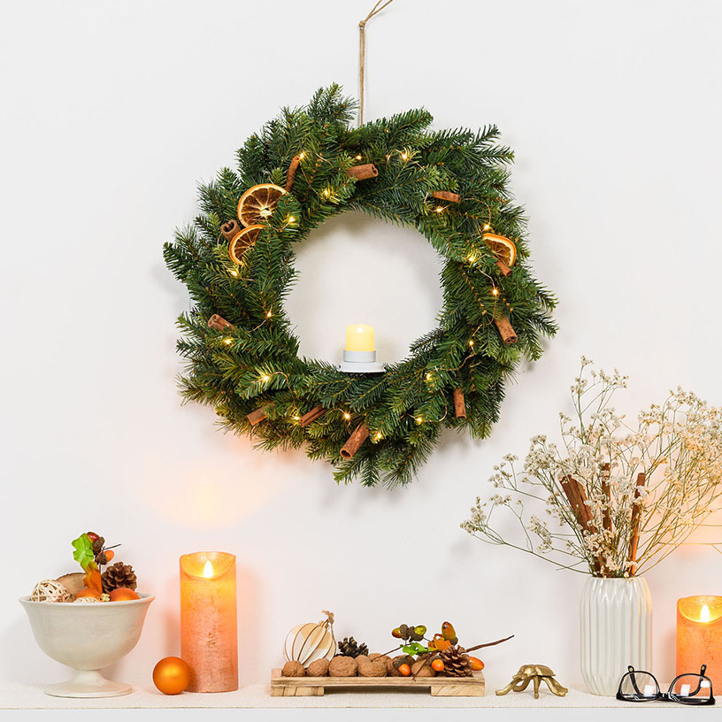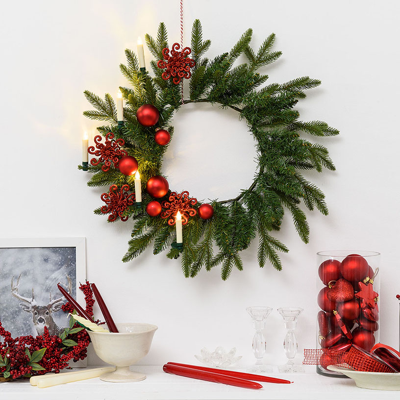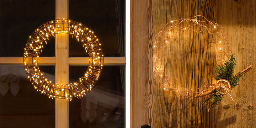 Wie Sie gesehen haben, sind unsere Ideen ganz einfach zum Selbermachen. Wenn Sie jedoch keine Lust auf handgefertigten Weihnachtsschmuck haben, nicht genug Zeit dafür aufbringen können oder etwas bereits Fertiges haben möchten, können Sie einen unserer Lichterkränze wählen, ihn dekorieren oder so lassen, wie er ist.