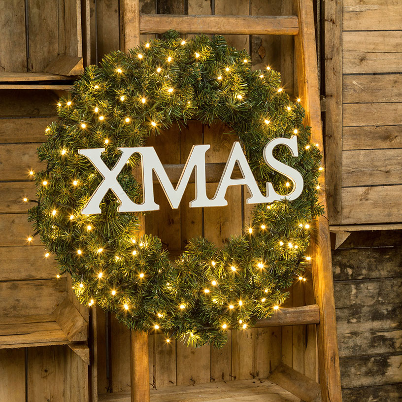 Ein Wort oder ein Wunsch in der Mitte. Die Aufschrift "Weihnachten" ist auf dem Markt sehr leicht zu finden und wird auf Ihrer Girlande immer gut aussehen.