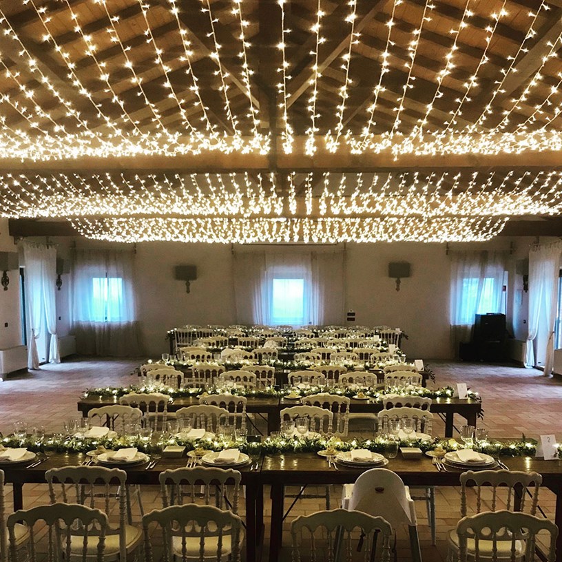 In der Tat verleiht das Blitzlicht der Szenografie der Hochzeit eine magische und realistische Note. Tatsächlich handelt es sich um sehr wenige LED-Lichter, die Mehrheit besteht aus LEDs mit Dauerlicht , die einen milden Sternen-Blitzeffekt erzeugen.