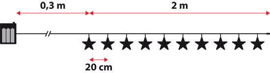 - Länge 2 m, 10 weiße Sterne Ø 75 mm