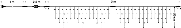 - 114 LEDs je 3 x h. 0,5 m, weißes Kabel