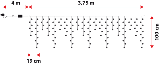 - 3,75 x h 1 m, 136 LEDs, weißes Kabel