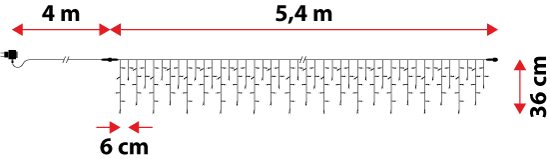 Diese 5,4 m breite Eiszapfen-Lichterkette ist mit 360 statisch leuchtenden warmweißen LEDs ausgestattet. Die Lichterstränge sind 6 cm voneinander distanziert. Die weißen Gummikabel sind besonders weich und fallen gerade herunter. PVC-Kabel sind im Gegensatz dazu starr und lassen sich nicht so leicht ausrollen.