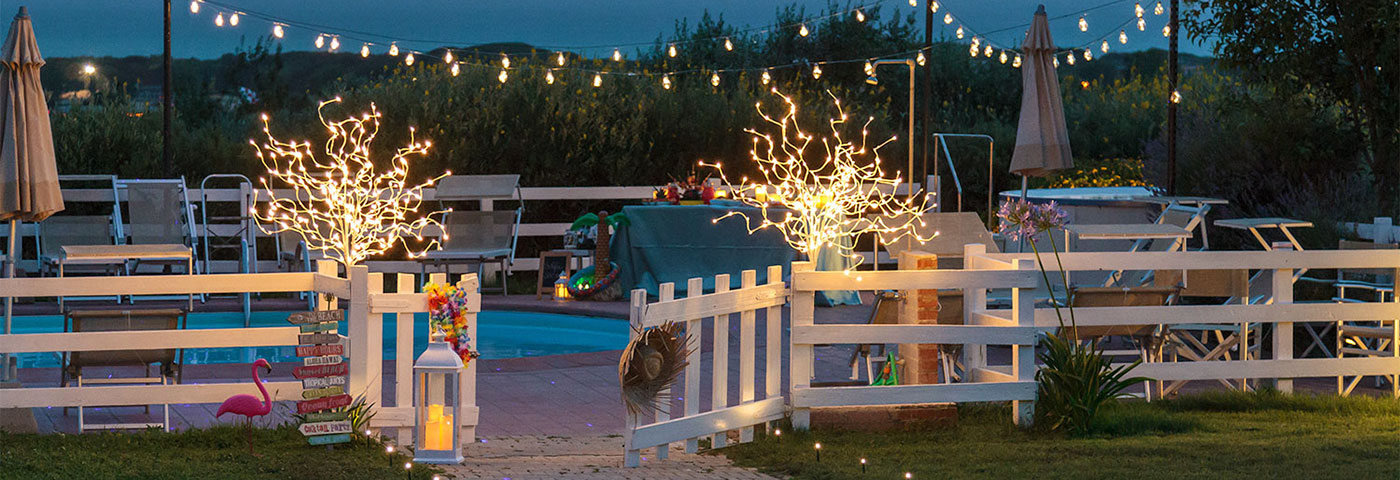 Weiß ist ein Muss für eine elegante und schicke Ausstattung, die durch die richtige Beleuchtung eine magische Atmosphäre kreiert. Egal ob Hochzeit oder Sommerparty... es ist fundamental, die Deko-Beleuchtung des Gartens wirkungsvoll zu gestalten.