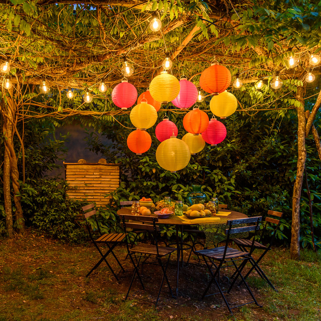 Verbreiten Sie Lebhaftigkeit durch bunte Lampion Lichterketten von unterschiedlichen Dimensionen, die Sie auf verschiedenen Höhen hängen könnten. Die Lampion Lichterketten werden Ihrer Ausstattung Persönlichkeit geben;