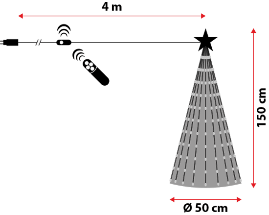 Die Gocce di Luce-Serie verfügt über eine Fernbedienung mit 4 Tasten: die obere ON-OFF-Taste, die untere Taste zum Ändern der Pixel-LED-Lichteffekte, die linke Taste zum Durchlaufen aller Effekte und die rechte Taste zum Aktivieren des 4/20 h-Timer oder der 6/18-Stunden-Timer. Durch Drücken der Timer-Taste blinkt die Dekoration rot, um die Aktivierung des 4/20-Stunden-Timers zu signalisieren; beim zweiten Drücken blinkt die Dekoration grün, nachdem der 6/18-Stunden-Timer aktiviert wurde; Wenn Sie schließlich die Timer-Taste ein drittes Mal drücken, blinkt die Dekoration weiß und der Timer ist deaktiviert.