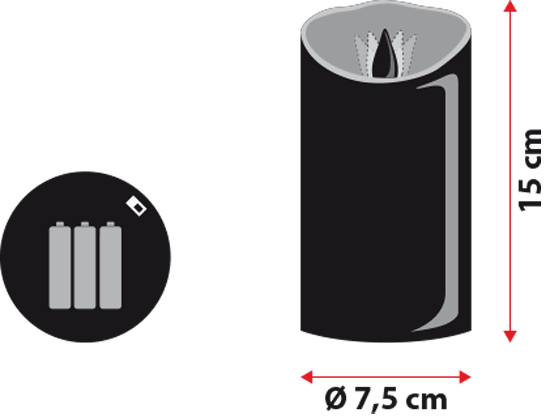 Diese 15 cm hohe LED Kerze mit Durchmesser 7,5 cm wirkt ziemlich realistisch dank der abgerundeten Kante und der täuschend echt wirkenden Bewegung einer 3D-Flamme.