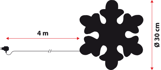 Der leuchtende Schneekristall, für den Innenbereich geeignet, hat ein 4 m langes Netzkabel und wird mit Niederspannung versorgt.