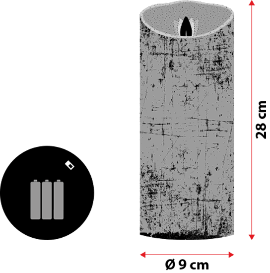 Diese LED-Kerze reproduziert die Form und Textur einer echten Kerze. Die Flamme bewegt sich selbstständig und das Wachs scheint in ihrer Hitze zu schmelzen. Der Körper der Kerze ist kompakt und fühlt sich rau an mit sehr dünnen Adern.