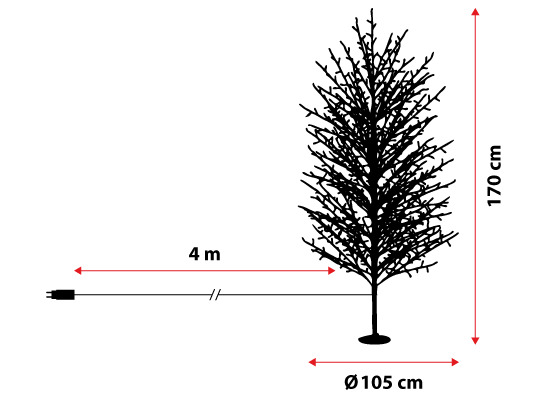 - h. 170 cm, 784 Micro LEDs, Silberdraht