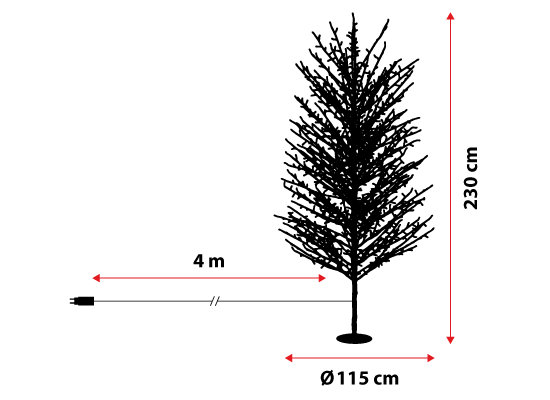 Dieser Baum ist 230 Zentimeter hoch und verfügt über eine Reihe von Ästen, die sich vom Stamm aus verzweigen. Diese sind dank des Metallkerns, der sie durchzieht, verformbar, so dass man sie an die Anforderungen der eigenen Dekoration anpassen kann. Darüber hinaus kann dieser Baum dank seiner Öffnung einen Durchmesser von 110 Zentimetern erreichen und eine wirklich bemerkenswerte visuelle Wirkung entfalten.