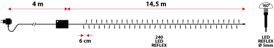 - Länge 14,5 m, 240 LEDs, grünes Kabel