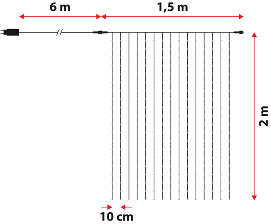 - 1,5 x h. 2 m, 300 MicroLEDs, weißes Kabel