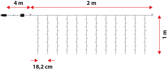 - 2 x h. 1m, 120 LEDs, transparentes Kabel