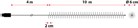 Die Kette hat die Form eines Zweiges mit all seinen Ästen, auf beiden Seiten an den Enden befinden sich die LEDs. Aus diesem Grund sieht die Dekoration aus wie ein großes Band mit einer Höhe von 6 cm.