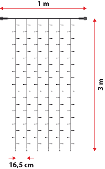 - 1 x h. 3 m, 180 LEDs, weißes Kabel