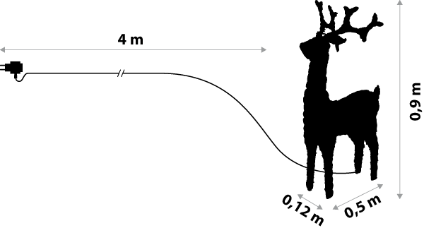 Das Rentier wird mit einem 4 m langen Zuleitungskabel und einem 24V-Trafo geliefert.
