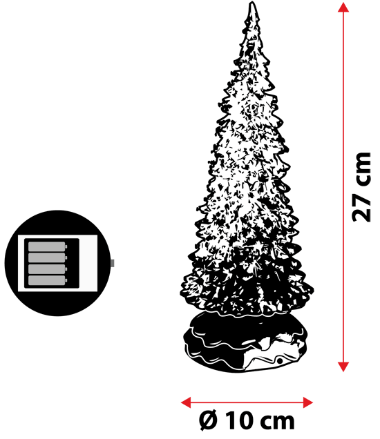 Der Baum ist 27 cm groß und hat ein Basisdurchmesser von 10 cm. Die im Sockel integrierte LED verbreitet warweißes Licht durch den schön verarbeiteten Acrylkörper.