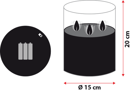 Das warme LED-Licht wird durch die 3 beweglichen Flammen auf das umgebende Glas reflektiert. Dieses Lichtspiel verleiht der Kerze eine unvergleichliche Eleganz.