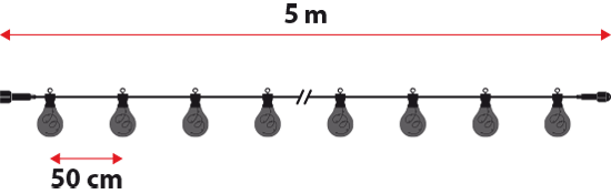 Smart Connect festoon lights, 5 metres main cable with 10 light bulbs 50 centimeters from one another (60 centimetres wide) with warm white micro-leds.