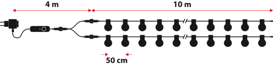 - 20 m, 40 RGB spheres Ø 45 mm, black cable