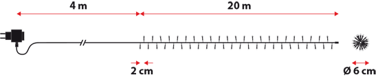 Questa catena luminosa è lunga 20 metri ed è costituita da 1000 miniled bianco freddo. Il cavo verde, mimetizzandosi, fa risaltare ancora di più la luminosità dei punti luce.