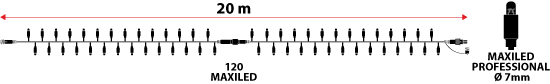 Professional LED String-Light 20 m long, with 120 warm white and steady-light maxiLEDs.