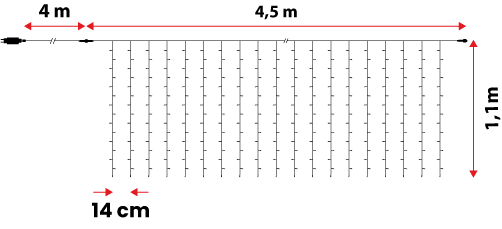 - 4.5 x h 1.1 m, 480 miniLEDs, white cable