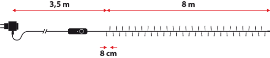 - 8 m of lights, 100 Pixel LEDs, black cable