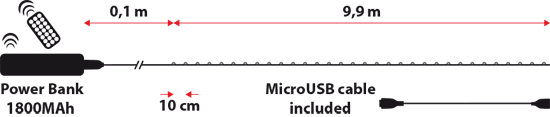 - 9.9m of lights, 100 micro LEDs, coppery cable