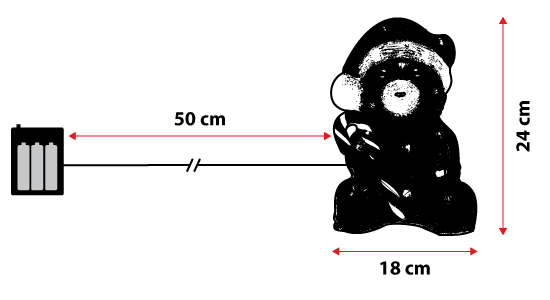 The practical battery operation (3 x AA) allows you to place it anywhere, without the need for electrical outlets. This decoration is for indoor use, and the battery holder connected to the figure has a 50 cm transparent cable. Thanks to the ON/OFF switch, you can activate the 8/16 hour timer, so the figure will automatically turn off after 8 hours and turn back on after 16 hours.