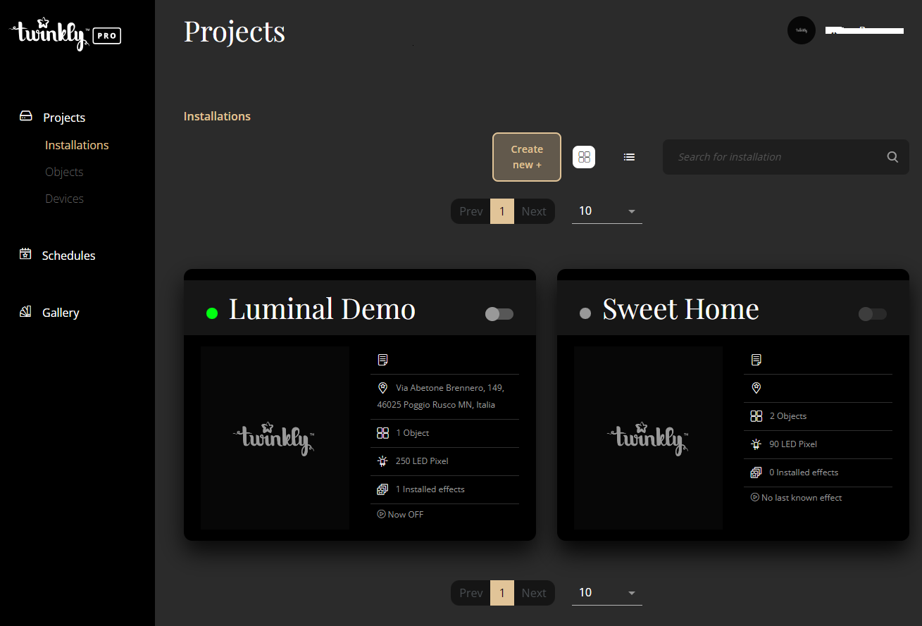 On the other hand, it is, of course, possible to opt for Twinkly Pro, but the management is more complex and expensive. The additional specific features of the Twinkly Pro line may not be necessary for this type of installations (for example, the use of DMX control).