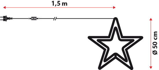 La stella, alta 50 centimetri, si illumina grazie a 360 led di colore bianco caldo a luce fissa. Funziona con la normale corrente di casa a 230V.