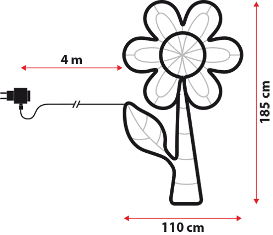 Il fiore a neon funziona a corrente, è a bassa tensione e dispone di un cavo lungo 4 metri, pratico e maneggevole.