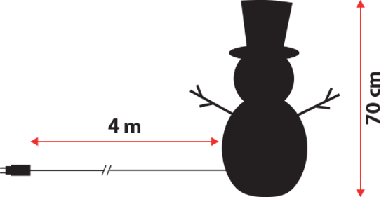 The structure is made of white metal, covered with an acrylic material that reflects the LED light, perfectly defining the shape of the snowman.