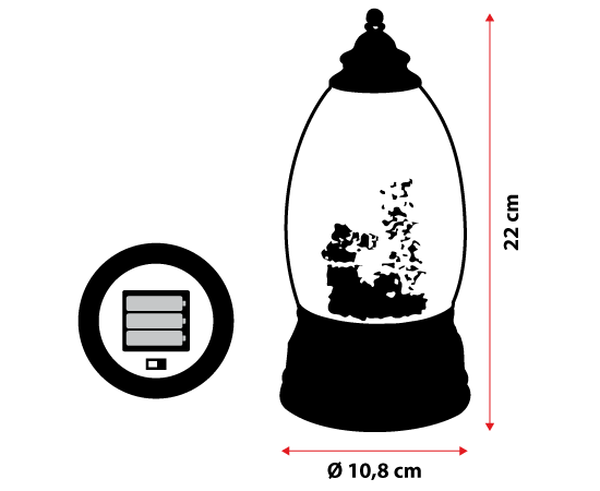 The true highlight of this lantern is the glittering light effect. Thanks to a warm white LED at the base, the moving glitter in the water inside the decoration creates a magical and enchanting effect, perfect for lighting up winter evenings.