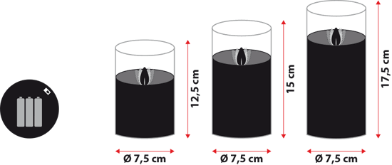 - Batteries 3 x AAA each candle (not included)