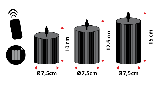 - 3 LED candles Ø 7.5 x h 10/12.5/15 cm