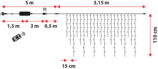 Se trata de una estalactita a la vanguardia, donde cada led puede controlarse por separado, ello permite crear juegos de luces nunca vistos hasta ahora en el campo de las guirnaldas navideñas.