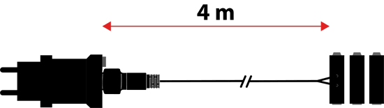 El transformador Battery Eliminator tiene un práctico cable de alimentación de 4 metros de longitud, perfecto para ayudarte a conectar a la red cualquier adorno alejado de la toma de corriente.